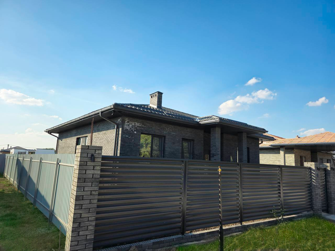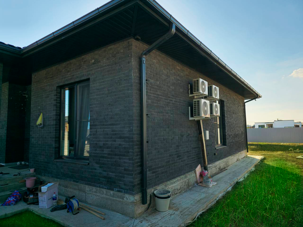 Завершено строительство современного жилого дома из кирпича Fashion Brick в элегантном черном цвете. Этот стильный и утонченный материал стал основой для создания не просто дома, а настоящего архитектурного шедевра, который гармонично вписывается в окружающий ландшафт.