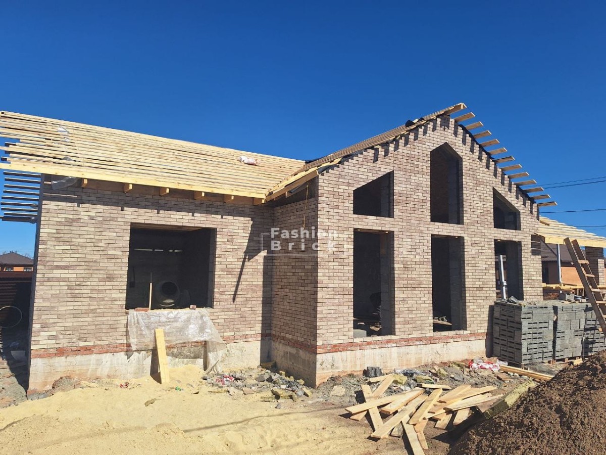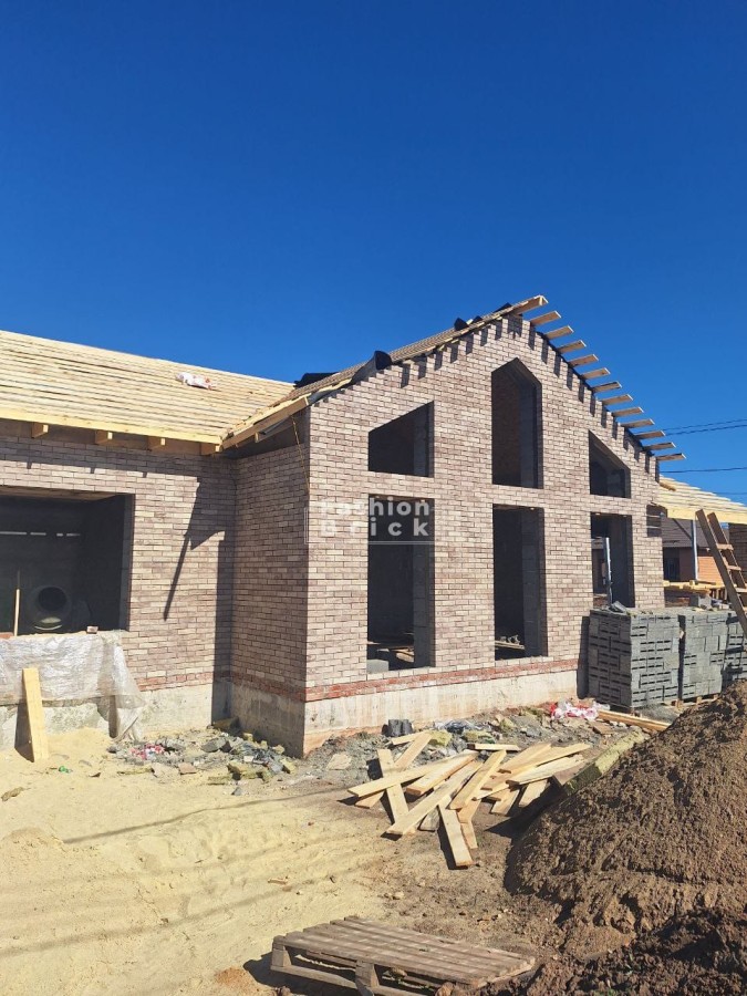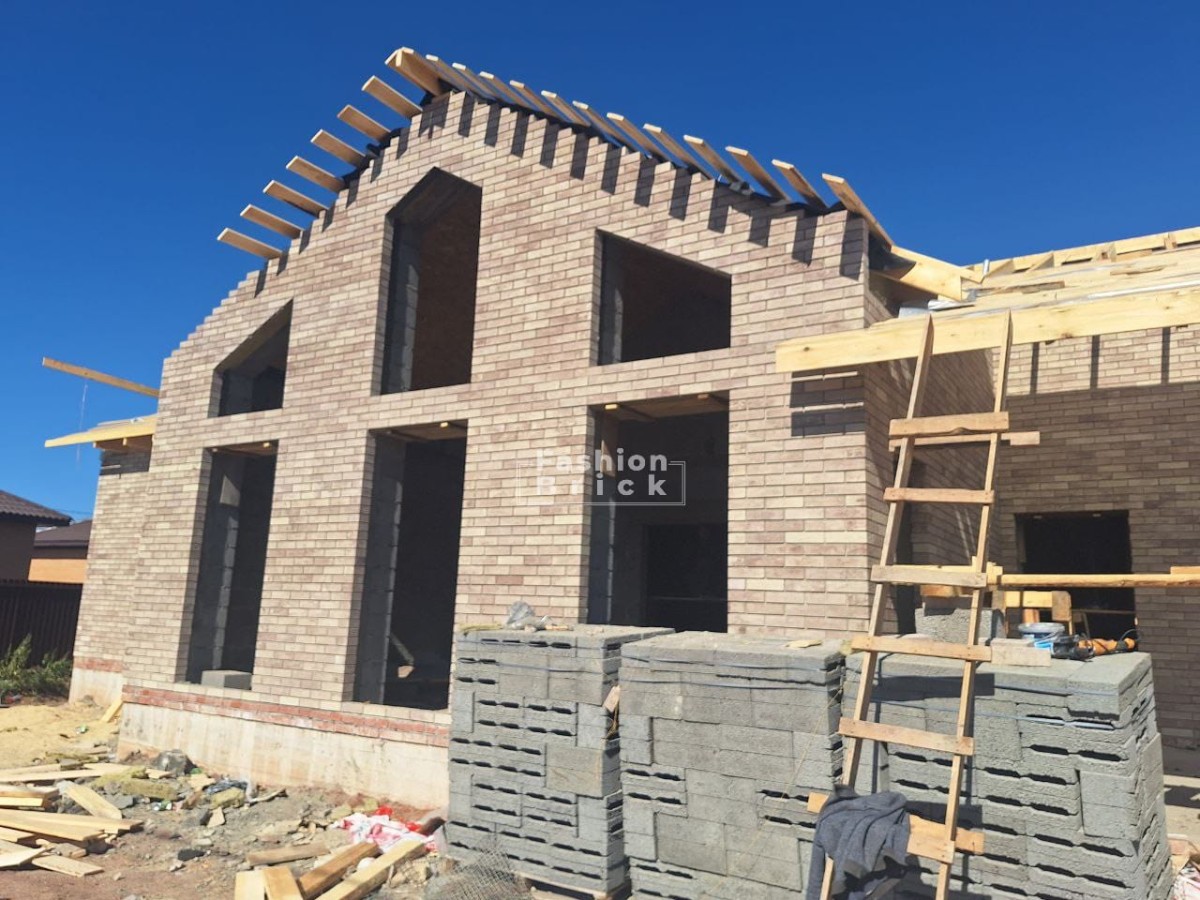 Кирпичи от завода Fashion Brick отличаются высокой качеством, устойчивостью к атмосферным условиям и долговечностью, что гарантирует сохранение привлекательного вида и надежность конструкции на долгие годы. Фотографии строительного процесса показывают аккуратность кладки, профессионализм строителей и высокое качество используемых материалов.